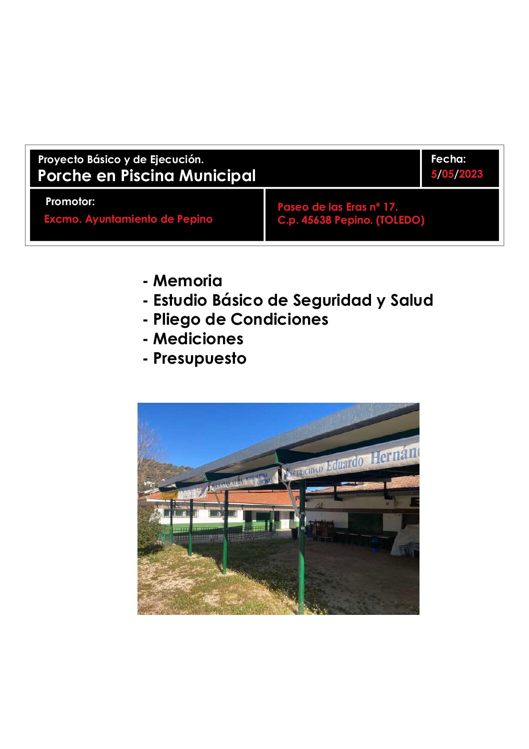 ANUNCIO OBRA PORCHE PISCINA PLATAFORMA